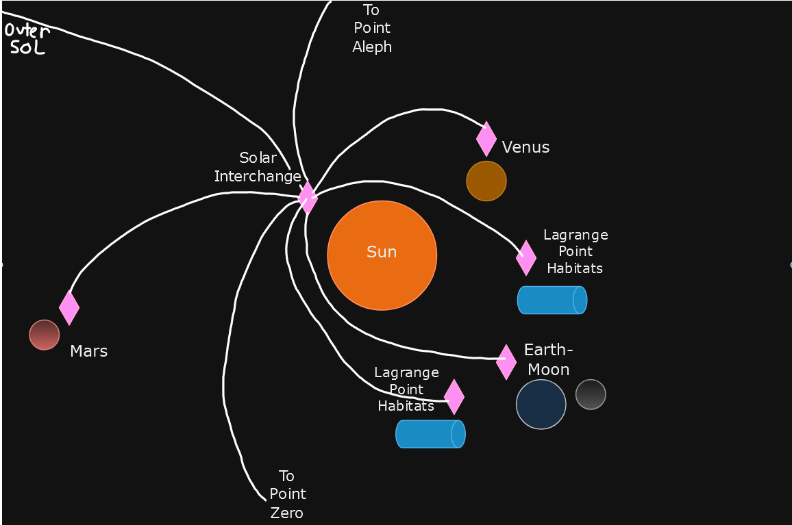 “So we pass through the Solar Interchange,” Olga said, “and head for Earth? Bold, the Toffs will not be expecting that! At biological-safe accelerations we can make the trip in three days. Perform an early high-speed off ramp, then a gravity assist maneuver coupled to an atmospheric deflection that launches us out towards the Belt? You know that puts us weeks out of the loop, Franz.”